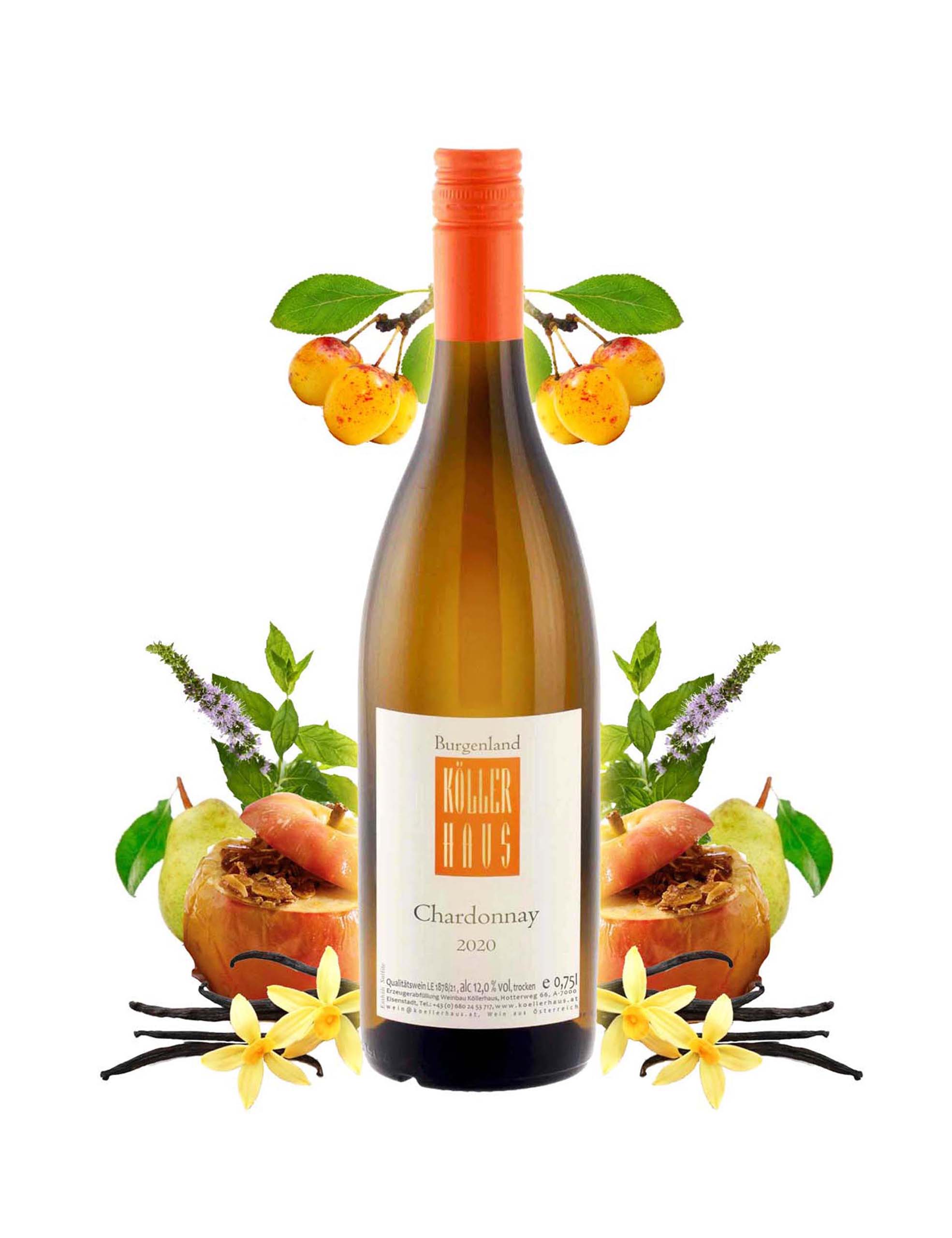 Mittleres Gelbgruen, Tropenfruchtnoten, cremige Beeren, ein Hauch von Bratapfel, Ackerminze-Nuancen und nussig verspielt am Gaumen. Milde Saeure, saftig, weißes Kernobst, mollig im Abgang, Vanille Anklaenge im Nachhall. Ein leichter sommerlicher Chardonnay mit gutem Trinkfluss. 12% Vol., 1,8 g/L RZ, 5,9 g/L Saeure, trocken, 0,75 l Fl.